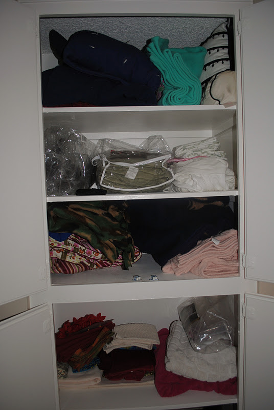 I love my tupperware, because it basically organizes itself. I also keep all sorts of food storing items in here, and plastic/paper dishes and silverware. Oh yeah, and my placemats and any extra Clorox wipes (I